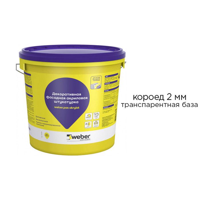 Декоративная акриловая штукатурка weber.pas akrylat короед 2 мм, транспарентная база, 25 кг